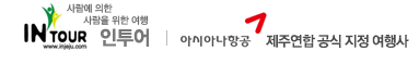 ㈜인투어 | 대표자 : 송은순 | 사업자등록번호 : 101-86-50772 | 통신판매업신고 제2014-서울용산-00030호 대표번호 : 02)720-5088 | 팩스번호 : 02)720-9588 사업자정보확인 본사:서울시 중구 세종대로 135, 8층 802호 (태평로1가, 코리아나호텔) | 지사:제주특별자치도 제주시 용담삼동 1020-6번지 |